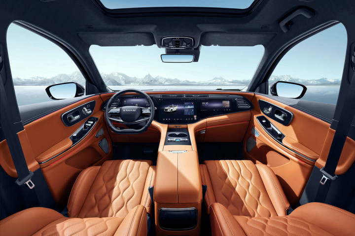汽油电动 星途 VX C-DM 目前提供两种装饰级别。除了上述显示屏外,配置还包括Nappa皮革内饰、座椅加热、通风和按摩、投影显示屏、智能手机无线充电、先进的自动停车系统以及许多其他驾驶辅助系统。
